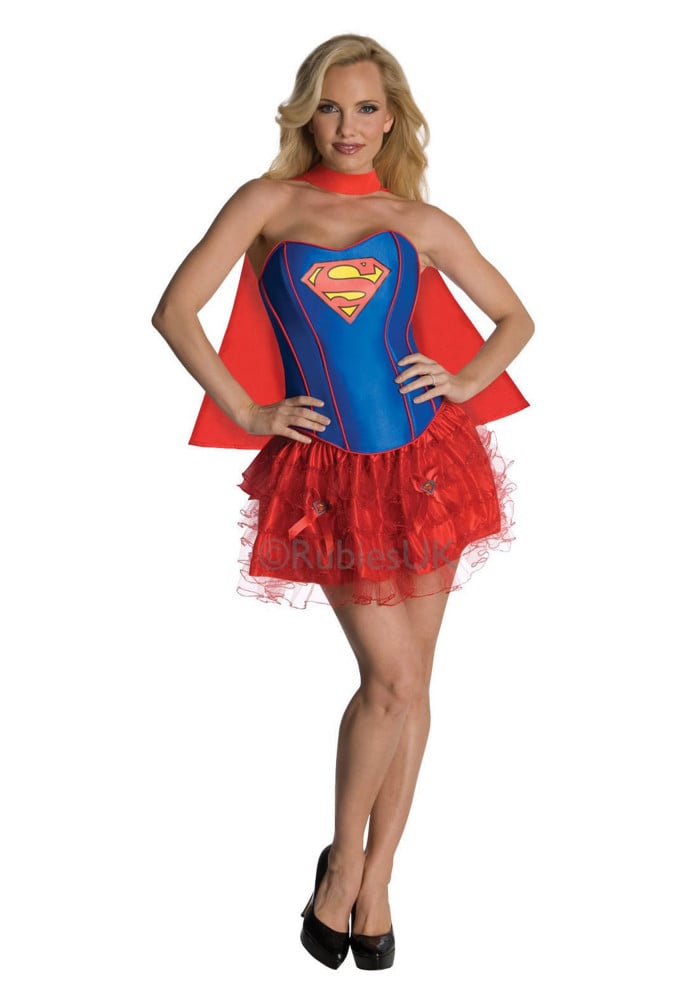يشمل المنتج:مشدتنورةرداءوصف الزي:مشد بفتحة رقبة على شكل قلب وشعار مطبوع وحواف حمراءتنورة مكشكشة مع طبقة من التول ، وأقواس من الساتانرداء ساتان قابل للفصلمنتج DC Comics مرخص رسميًا