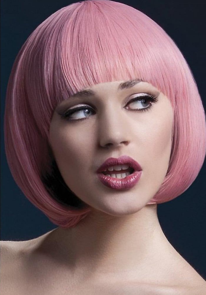 شعر قصير بوب مع هامش وردي فاتح - 25 سم
