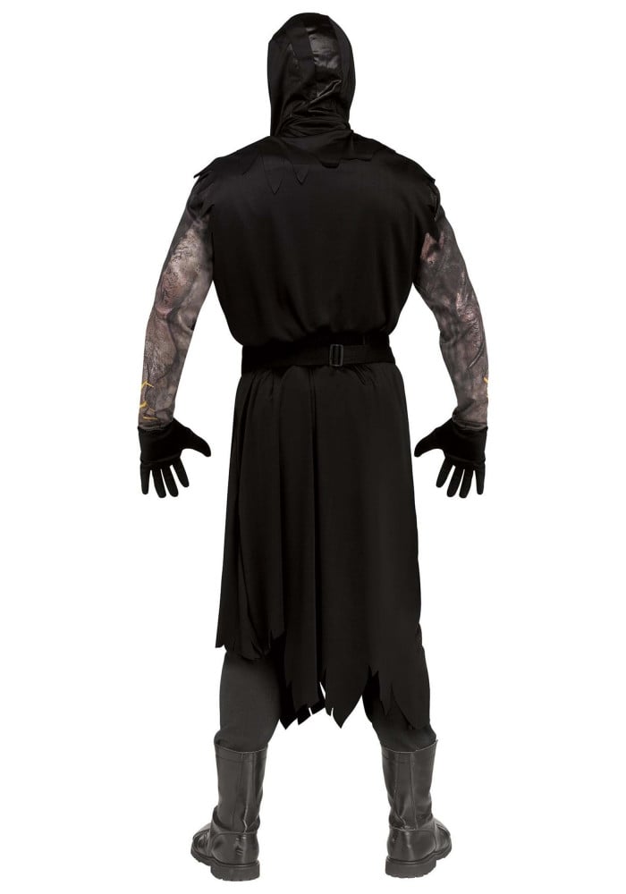 - يحتوي الجزء السفلي من السترة على خطوط مطبوعة تشبه القطرات الذائبة من القناع