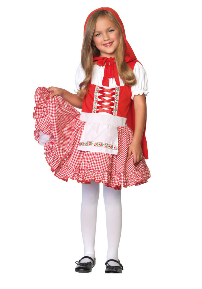 - يتضمن هذا الزي ذو الرداء الأحمر للأطفال فستانًا من قماش قطني وغطاء رأس أحمر بقلنسوة