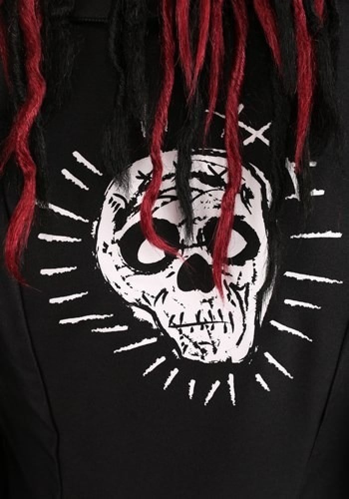 - شارة جمجمة مطبوعة على الكم الأيسر ، جمجمة على ظهر السترة